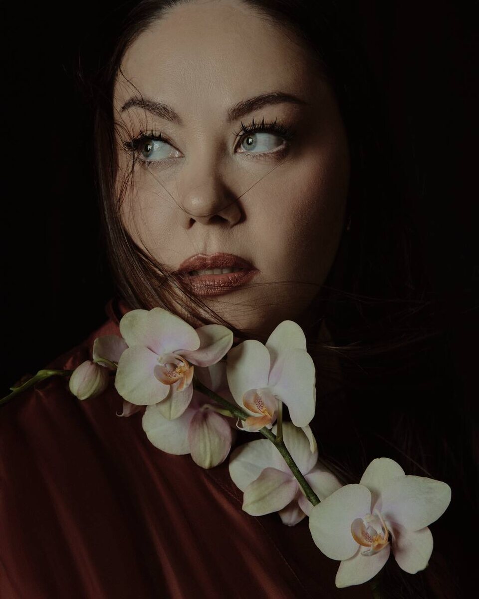 В первой серии раскрываем полупрозрачные намерения в терракотовом костюме, дополняя образ дивной героини Кати Новиковой цветком дикой орхидеи 🌺