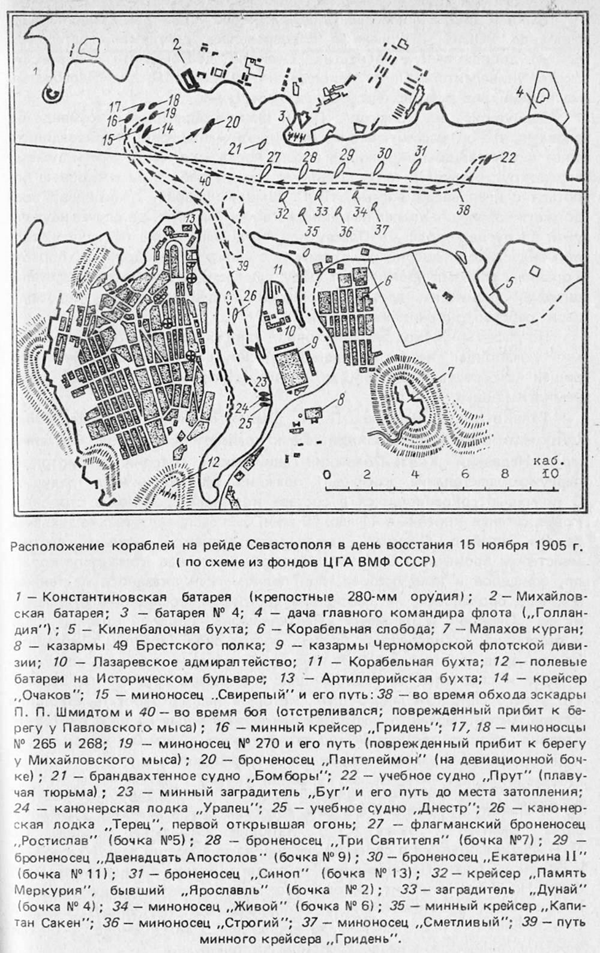 Объективно говоря, крейсер "Очаков" боевым кораблем не был и отвечать на огонь батарей крейсер не мог. Однотипный крейсерам "Олег" и "Богатырь", крейсер - дальний разведчик "Очаков" официально находился еще в постройке. Злые языки поговаривали, что при строительстве крейсера командующий флотом Г.Чухнин составил себе состояние. Возможно, именно с этим связан жестокий расстрел беспомощного крейсера. Адмирал "прятал концы в воду". Подтверждает это и тот факт, что подрядчикам была выплачена ВСЯ сумма подряда уже ПОСЛЕ расстрела крейсера.