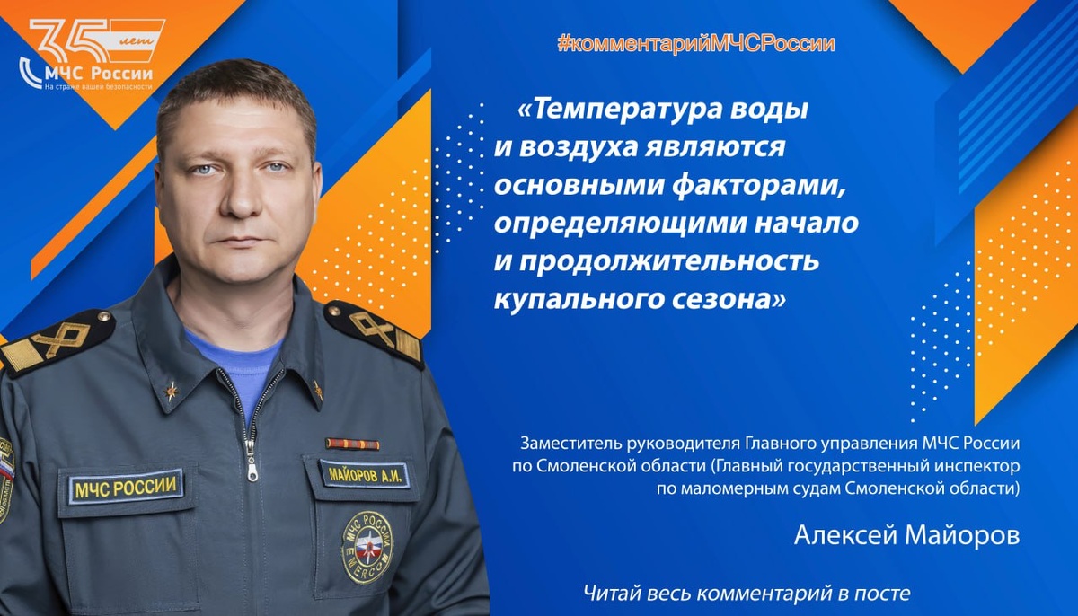 💬 Какая продолжительность купального сезона? Где смоляне смогут узнать о том, что в воду больше нельзя? Купальный сезон обычно длится с июня по август, но может начинаться раньше и заканчиваться позже, в зависимости от конкретного места и погодных условий. Температура воды (не ниже 18-19 градусов) и воздуха (не ниже 22 градусов) являются основными факторами, определяющими начало и продолжительность купального сезона. Открытие, равно и закрытие купального сезона на конкретном месте, конкретном пляже определяет собственник в рамках нормативно-правовых актов. Соответственно информацию об открытии и закрытии купального сезона на территории своего района смоляне могут узнать на официальных сайтах органов местного самоуправления. @ГУ МЧС России по Смоленской области #МЧСРоссии #комментарийМЧСРоссии