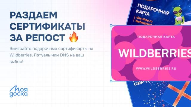 Выиграйте подарочные сертификарты на Wildberries, Лэтуаль или DNS на ваш выбор! Все что нужно это: