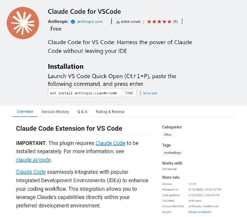 ⚡️ CLAUDE CODE В VS CODE — ОФИЦИАЛЬНЫЙ ПЛАГИН ОТ ANTHROPIC Нейронка теперь ближе, чем когда-либо! Anthropic выпустил официальный плагин для VS Code, который интегрирует Claude прямо в вашу IDE. Установка — один клик, и вы готовы к разработке на новом уровне. Лайфхак: используйте комбинацию клавиш Alt+Cmd+K (или Alt+Ctrl+K на Windows), чтобы вставить выбранный код прямо в промпт для Claude. Плагин работает с вашими файлами, пишет функции, исправляет ошибки, запускает тесты и даже делает коммиты — всё без лишних действий. Круто, правда? 😎 Подробности и установка плагина — здесь. Обязательно попробуй и расскажи, как тебе работа с Claude в VS Code! #Claude #Anthropic #VSCode | ВСЁ ПРО AI | AI NEWS | Дзен | ОК