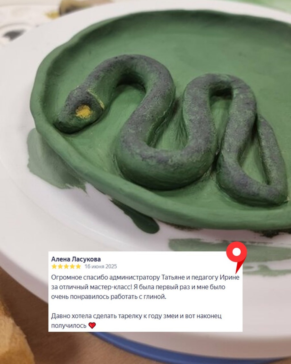 🤩 Работа с глиной — это не только про ремесло, но и про мечты, которые становятся реальностью. Алёна Ласукова давно хотела создать особенную вещь своими руками — тарелку, посвящённую году Змеи. И вот, её первая встреча с глиной на мастер-классе в нашей школе стала по-настоящему значимой. Алёна пришла к нам впервые, и сразу же нашла отклик в заботливом сопровождении администратора Татьяны и чутком наставничестве педагога Ирины. Вместе они помогли воплотить идею в жизнь: форма, фактура, детали — всё получилось именно так, как мечталось. Иногда одного мастер-класса достаточно, чтобы открыть в себе нечто новое: спокойствие, интерес к ручному труду или просто радость от процесса. Мы счастливы быть частью таких открытий. Спасибо, Алёна, что доверились нам и поделились своими впечатлениями ❤️ Будем рады видеть вас снова! Гончарная школа Зарни Ань | Симферополь #отзывы