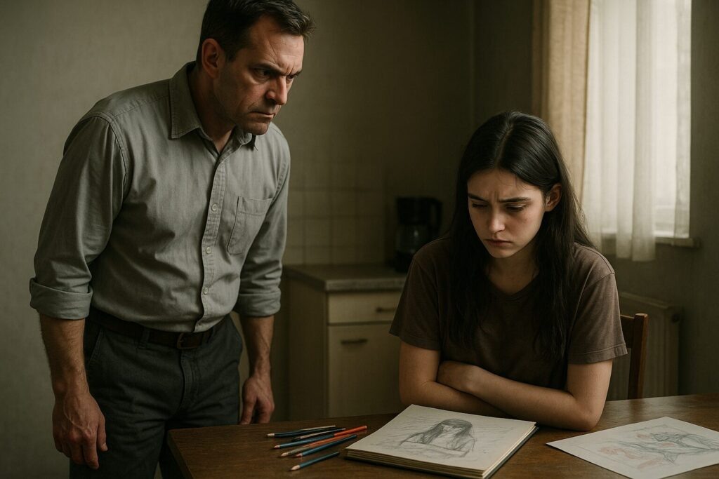 Вечером Маша лежала на кровати и листала свой альбом. Рисовала она с детства – сначала неумело, потом всё лучше. В художественную школу папа отдавать не захотел, пришлось учиться самой – по урокам из интернета, по книгам из библиотеки. Иногда казалось, что рисование – единственное, что держит её на плаву в этом сером мире.