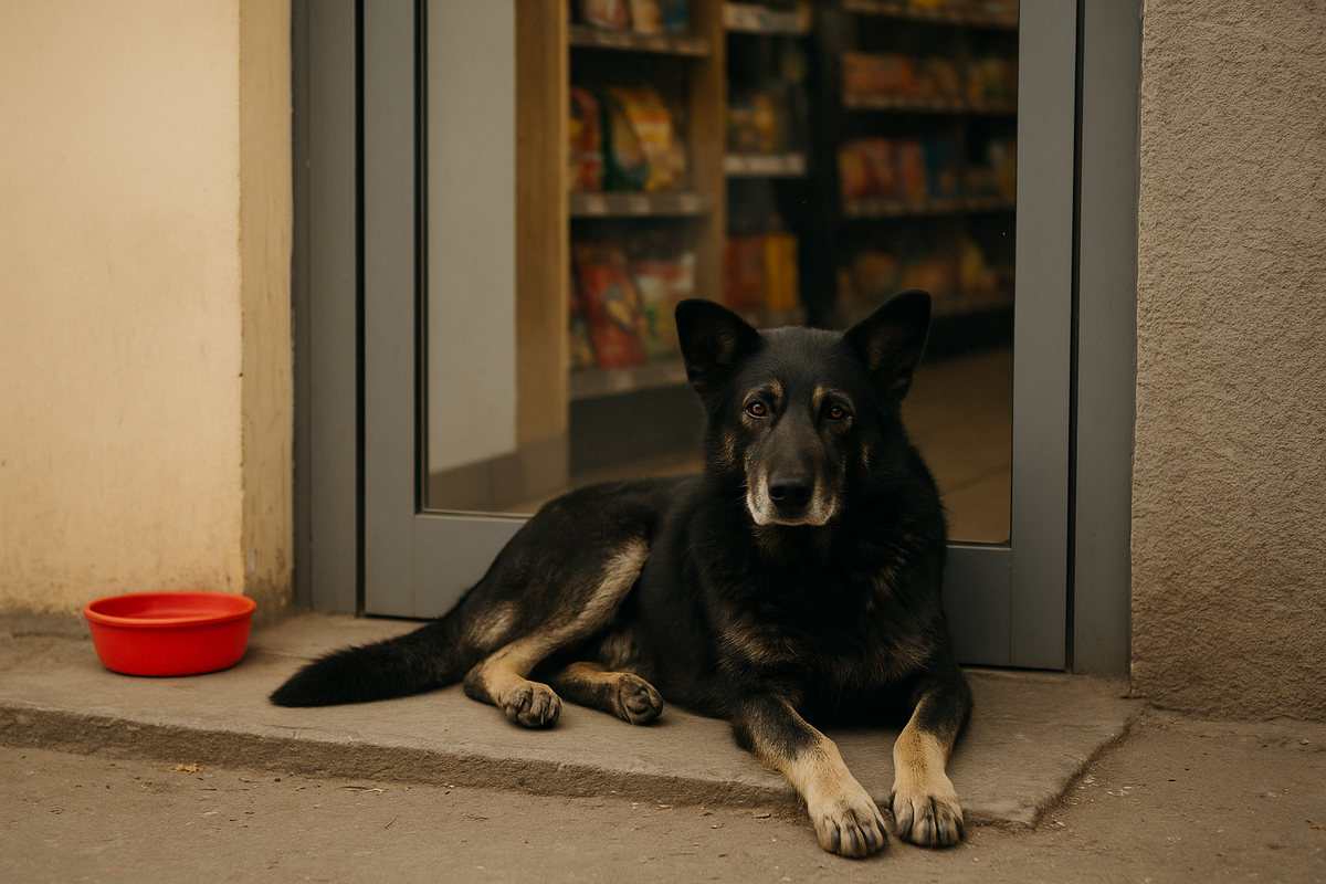 В какой-то момент я перестал проверять, придёт ли он. Просто знал: будет. К десяти, максимум к половине одиннадцатого, Сержант появлялся на перекрёстке, подходил к магазину, тяжело садился у двери и как будто говорил: «Докладываю: район под контролем».