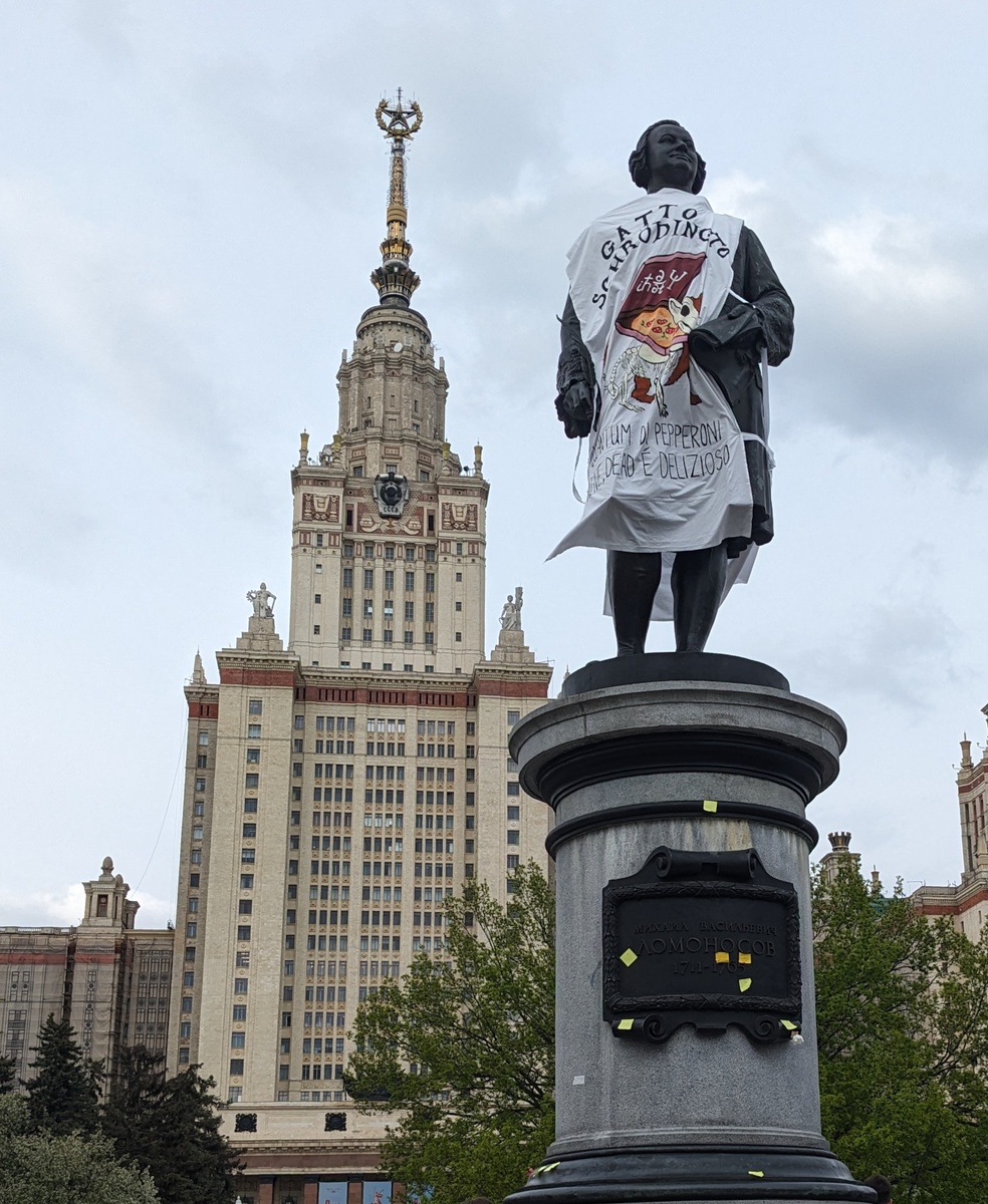 В этом году впервые побывал на Дне Физика в МГУ. Точнее, посетил только вечерний концерт. Не понял прикола с Ломоносовым и пиццей. Также не понял прикола со стикерами, которые лепят на постамент Ломоносова. Если вдруг кто-то знает, объясните :) Концерт - хороший. Любопытно было бы глянуть ещё и дневную часть празднований.