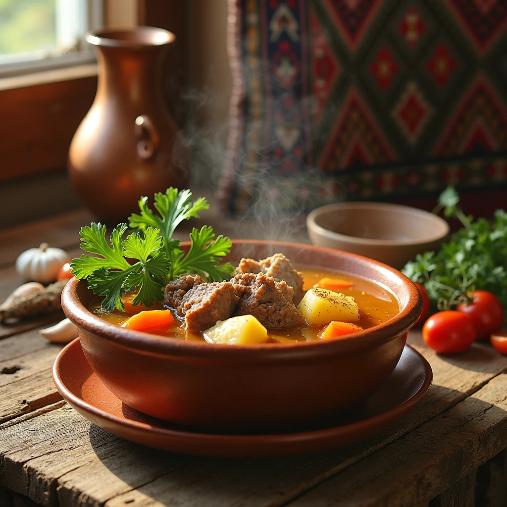✅ Специи: соль, перец, хмели-сунели, кинза, чеснок 1️⃣ Мясо режем кубиками, заливаем 2 л воды и варим 1,5 часа (огонь средний, бульон должен кипеть еле-еле). 2️⃣ Лук и морковь пассеруем на сливочном масле (не на растительном – это секрет кавказского вкуса!). 3️⃣ Добавляем томаты (или пасту), тушим 5 минут. 4️⃣ Картошку режем крупно – как любят на Кавказе! – и бросаем в бульон. 5️⃣ Через 10 минут добавляем зажарку, хмели-сунели, соль и перец. Варим ещё 15 минут. 6️⃣ В самом конце кидаем рубленую кинзу и чеснок (3 зубчика). Выключае