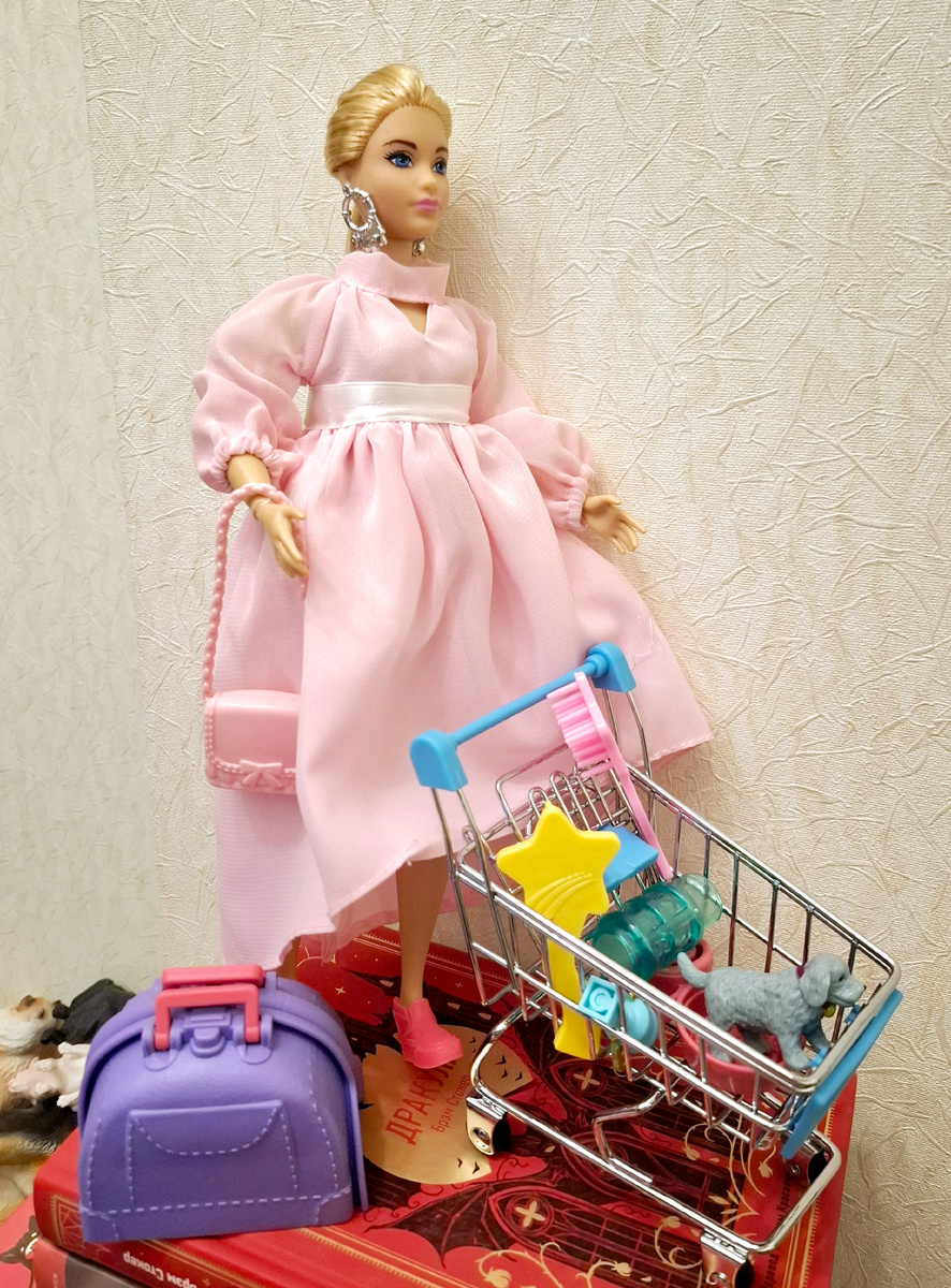 За то время, пока меня тут не было, я успела купить лишь двух Софий и тележку с собачкой и аксессуарами. Вот эта София на фото мне очень понравилась, не похожа на других. Прошивку не проверяла... Тележка, а в ней щенок. И аксессуары для него. Кейс. А тут помогатор пришёл! София словно кричит: "Помогите!"😁 Все Евгению интересно! А вот другая София. Беременная. Но мне она в живую не очень понравилась... 🥲 Прошивка, кстати, не очень... В общем, покупками и довольна, и нет. Как ни странно, мне больше всего понравилась тележка!😁