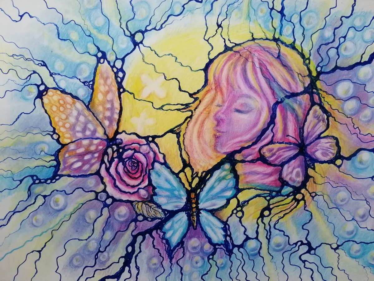 Рисунок на конкурс по нейроарт. Проходит в группе телеграм: https://t.me/neurografica/ Автор рисунка Людмила Джорджашвили, иллюстрация на текст: Под крыльями бабочек нежно звенит рассвет Вот солнце поднимается, всё пространство освещая, растворяет тьму. Наслаждаюсь восходом солнца. И всё вокруг проникновенно ожидает этот момент. Вот оно- Рождение нового дня! Моя душа трепещет от счастья и ликует. Она готова взлететь и парить, словно бабочка, лёгкая и игривая. Я улыбаюсь, я в восхищении! "Остановись мгновенье, ты прекрасно!" " Да здравствует ЖИЗНЬ! Благодарю тебя, СОЛНЫШКО!" Каждый новый день- это как маленькая жизнь. Бабочки- нежные эфемерные хрупкие существа. Их жизнь быстротечна. Они неприхотливы и приносят столько красоты и гармонии. Полетав, словно бабочка, ранним утром, ценю и благодарю каждый рассвет!" 🔥🔥Каталог курсов Школы Нейрографики "Чистый Лист", можно приобрести из любой страны на сайте: https://neurograficaschool.ru/