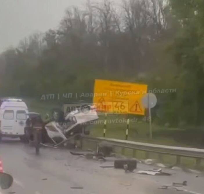 Жесткая авария в Курской области: легковушка перевернулась, грузовик вылетел с трассы