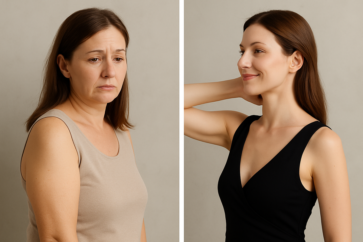 И действительно: даже у стройных женщин после 35–40 лет меняется качество кожи и мышц в области рук. Рука выглядит тяжелее, плечо теряет чёткость, а в районе трицепса появляется дряблость.