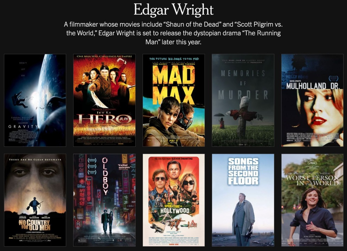 Вышел рейтинг Топ-100 фильмов XXI века, составленный The New York Times с участием 500 выдающихся актёров, режиссёров и писателей из Голливуда. В создании списка участвовали такие личности, как Эдгар Райт, Стивен Кинг, Роберт Эггерс, Самара Уивинг и многие другие. Каждый день публикуются по 20 фильмов — первая партия уже доступна. Также можно ознакомиться с личными топ-10 каждого из кинематографистов. Этот список обеспечит вас отличным контентом для просмотра на долгие годы. Узнать больше можно на сайте The New York Times. Наш уютный канальчик 🤖 Анимация | СhatGPT-4 | Помощь с резюме