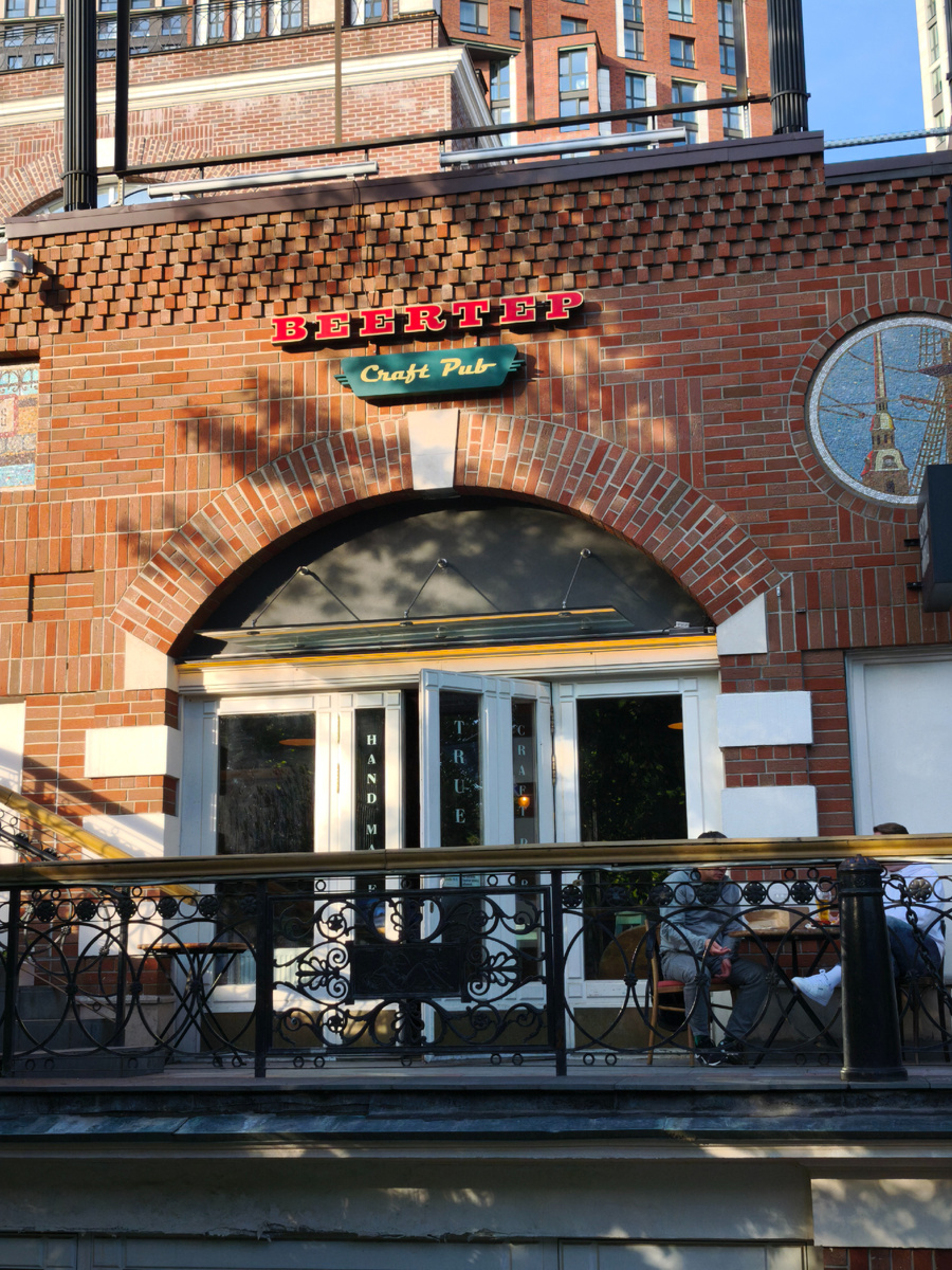 Мы тут с Ботсадовской бандой решили, что негоже прозябать на своих окраинах по выходным и будем на регулярной основе исследовать чужие. Теперь пополнение рубрики «Локал пабы в попе мира» будет чуть более частым. Вчера в прогулочных целях наведались в САО, высадившись на МЦК Коптево и находив дневную норму шагов в парках усадьбы Михалково и Невском, дотопали до первой точки северного пабкроула — бара Beertep. Расположился он в торговой галерее «Невский причал» неподалёку от метро Водный стадион, окружённый разными фаст-фудошными, кофейнями и едальнями. Внутри обжитой уютный зал с граффити и кучей артефактов: от пивных табличек и спортинвентаря до наклеек и плакатов. Особняком на полке за барной стойкой притаилась гранитная плита с надписью «Ты п**ор», которую одному завсегдатаю перед поездкой на сплав в баре подкинули в рюкзак друзья. Камень он обнаружил только на третий день, задумавшись отчего же поклажа кажется такой тяжелой, и привёз обратно в бар. Чтобы увековечить шутку, надпись м
