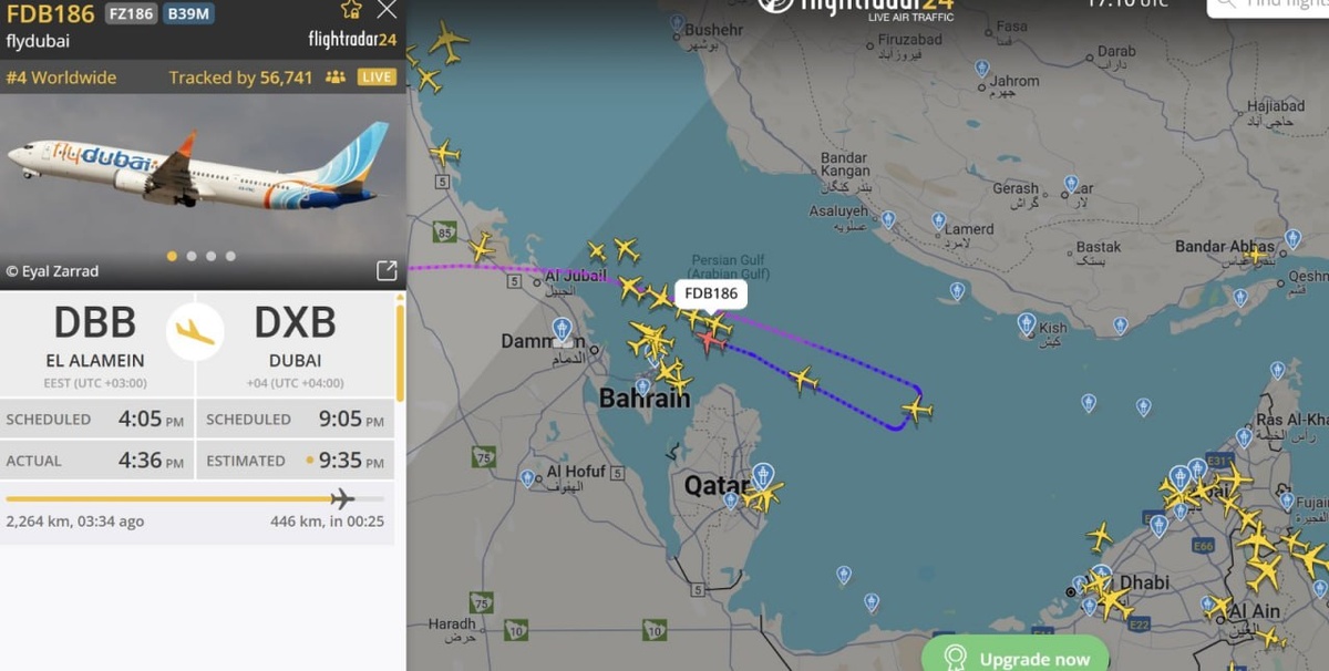 Самолеты, направляющиеся в Дубай, начали разворачиваться. Лайнеры flydubai, летевшие из Эль-Аламейна и Еревана, борт ланкийского перевозчика из Коломбо, Saudi из Джедды, меняют курс.