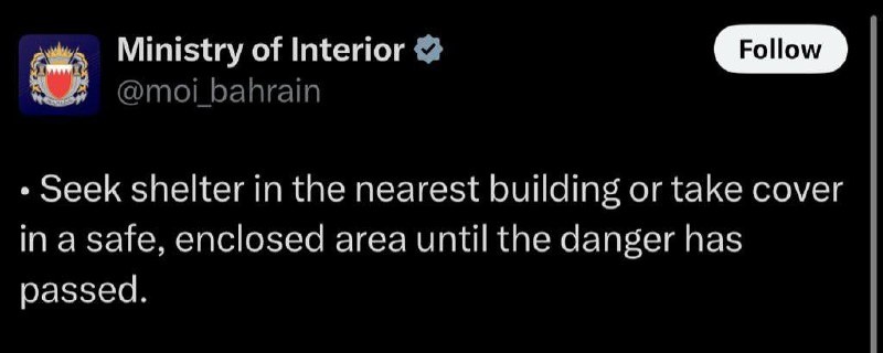 В ответ на пост ❗️ ‘SEEK SHELTER’ — Bahrain tells citizens after shutting airspace