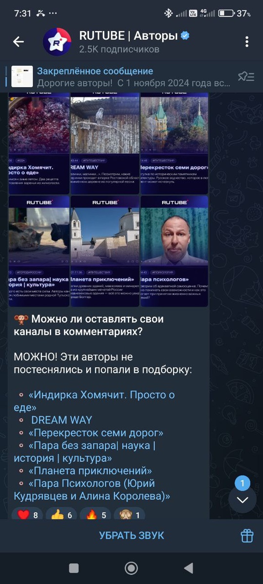 Наш канал засветился в официальном ТГ канале RUTUBE. Когда желание заявить о себе очень сильное.