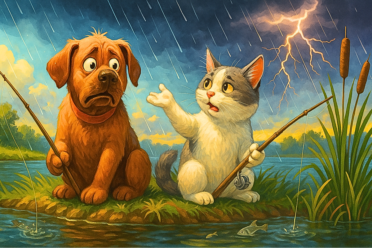 Кот Филя был не просто котом, а настоящим мастером ловли рыбы. Ну, не то чтобы чемпион мира, но в их дворе ему доверяли рыбалку как делу святому, даже дед давал ему свои удочки. А пес Тошка — он был добрым и немного рассеянным, зато от души веселым и преданным. Вместе они были идеальной командой — хоть и спорили иногда, кто из них лучший рыбак.
