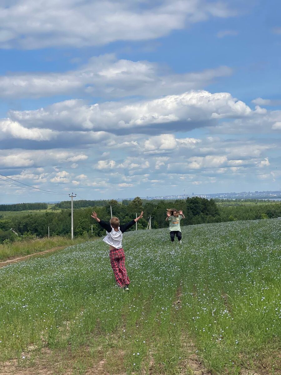 Сегодняшний продуктивный день на даче, такой приятный получился, хочется с вами поделиться🥹❤️ Приехали с детьми, моим папой и братом перестилать крышу, убраться и собрать ягод. Дача бабушки со стороны папы, мы все это место очень любим и вся семья помогает мне восстанавливать дом и сохранять это наследие и память. На полях на въезде теперь цветет лён и это фантастически красиво, эти нежно-голубые цветочки как будто светятся. Лён тут засеивают первый год, раньше была кукуруза, горох и гречиха. Обожаю эти наши поля вокруг дачи. Простор, тишина и совсем другой воздух😍 Завтра едем туда с Дашей снимать материал для летнего марафона, покажу вам тоже то что получится. На марафон буду звать уже июле, много классного душевного для вас придумали🥰✨