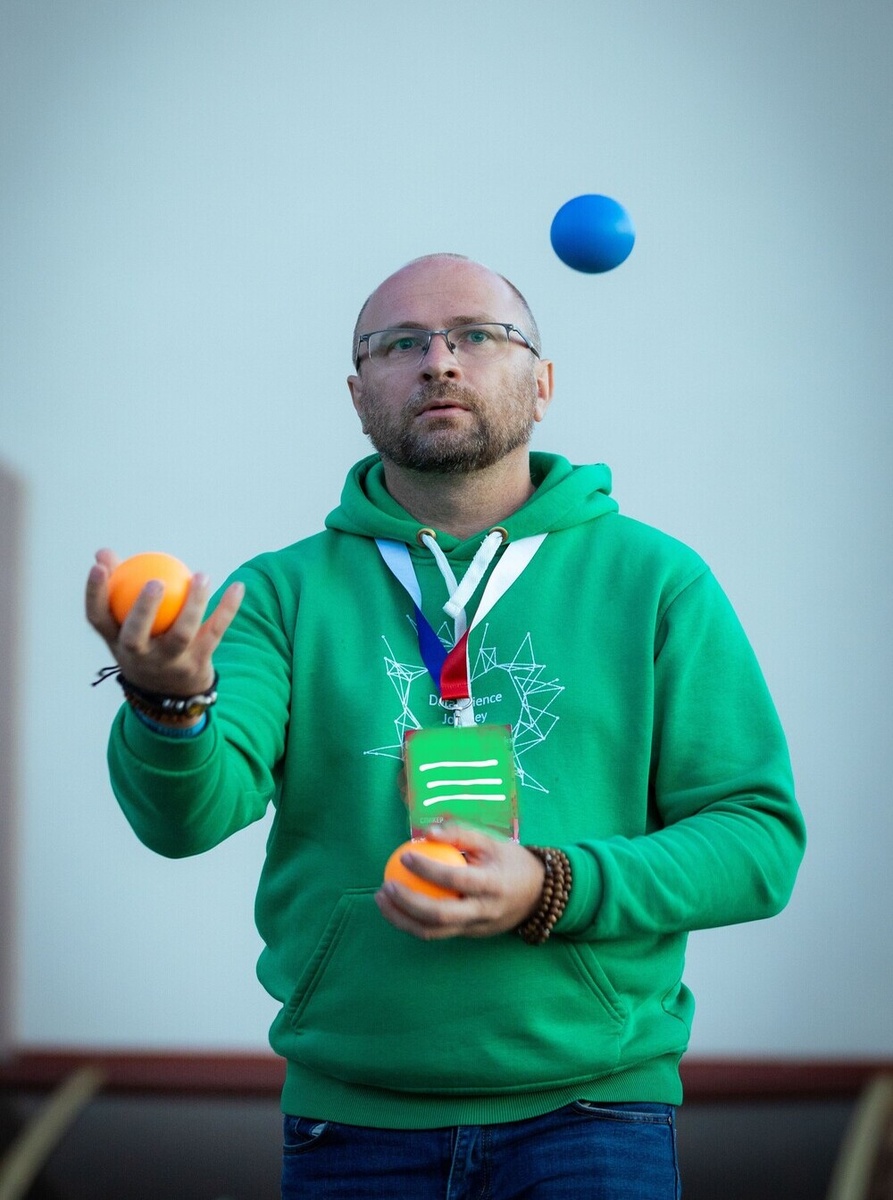 Доктор Че: Прекрасный вопрос! Дело в том, что жонглирование — это настоящая йога для мозга XXI века. Взглянем на нейросети: один сбой — и вся сеть посыпалась, как выпавшие булавы. Но если вернуться к началу и продолжить, то следующая попытка окажется успешнее предыдущей. А ещё помните ощущение «залипания» программиста перед экраном? Так вот, жонглирование снимает это состояние, возвращая телу подвижность и мозгу свежесть мыслей.