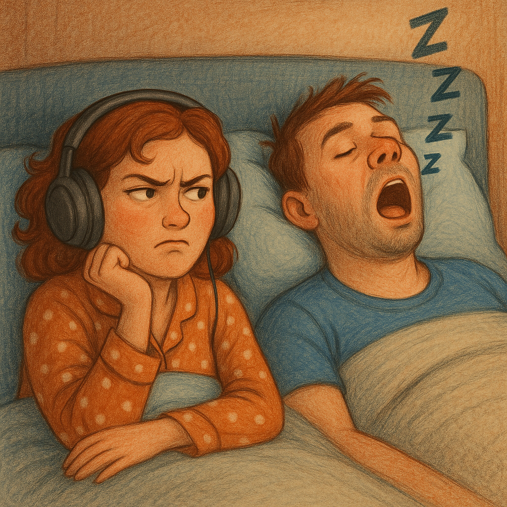 Жизнь со второй половинкой — это, конечно, прекрасно. Особенно в первые годы, когда вы такие влюблённые, спите в обнимку, делите на двоих одно одеяло (и это даже мило!). А потом… потом начинается ХРАП. Вот честно: почему в ЗАГСе не предупреждают, что с печатью в паспорте идёт бонус — ночная аудиосистема Dolby Surround, с полным отсутствием кнопки «выкл»? Мой муж начал храпеть примерно через год после свадьбы. Причём поначалу это были такие скромные «пых-пых» — как котёнок, который пытается угрожающе шипеть. Но годы шли, опыт рос, и теперь его храп — это уверенный, зрелый баритон. Иногда мне кажется, что соседи с утра здороваются со мной такими усталыми глазами именно потому, что ночью они слушали наш «семейный саундтрек». Первые месяцы я боролась по классике: пихала локтём (он ворочался и затихал ровно на три минуты), пробовала беруши (они не спасают от таких децибел). Однажды даже записала его храп на диктофон и на утро включила. Муж, конечно, посмеялся. Сказал: «Ого, это я? Надо буде
