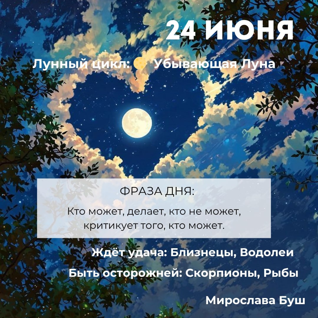 24 июня РЕКОМЕНДАЦИИ: ⭐️ Новолуние уже совсем скоро. Проведите практики ощущения, чтобы встретить его ясными и готовыми к новому. ❌ Если тянет пожаловаться — молчите. Жалоба отдаёт силу. Завтра лучше держать рот закрытым, чем открывать чужим доступ к себе. 🪄 Утром проговорите вслух своё имя. Скажите: «Я здесь». Это заякорит Вас в теле и включит личную силу. Заказывайте отливки по ссылке ➡️➡️ ХОЧУ ОТЛИВКУ ⬅️⬅️ ✉️ Подписаться на Мирославу #прогнознадень