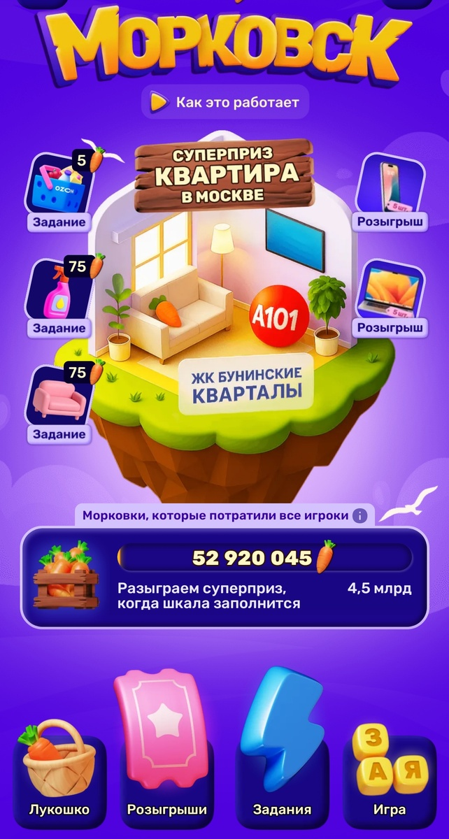 Озон запустил новую игру в своем приложении. Называется "Морковск". Срок игры с 23 июня по 20 июля 2025. Моментальные призы - промокод, предоставляющий скидку 90% на покупку: Призы: Суперприз: На что можно потратить Морковки: Кстати, если вдруг вам выпадут ненужные промокоды, всегда можно зайти в мой ТГ-канал и запостить их там там в комментарии к посту с промокодами. Ну и самим что-нибудь оттуда забрать.