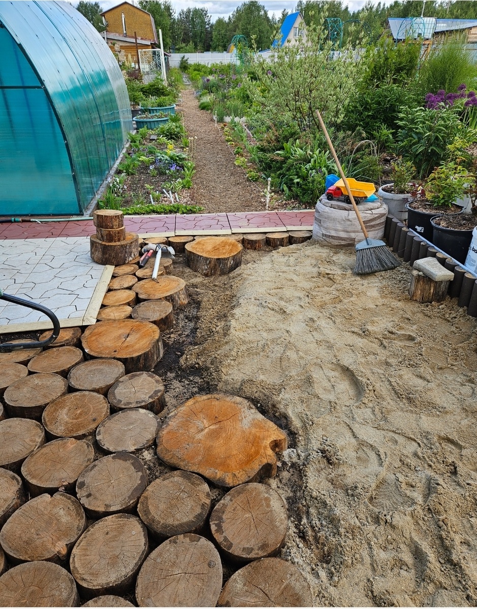 Три часа самоотверженной работы и всё, площадка готова к приёму маленького ,,урагана", носящегося по дорожкам на машине о четырёх колёсах, на ножной тяге.
