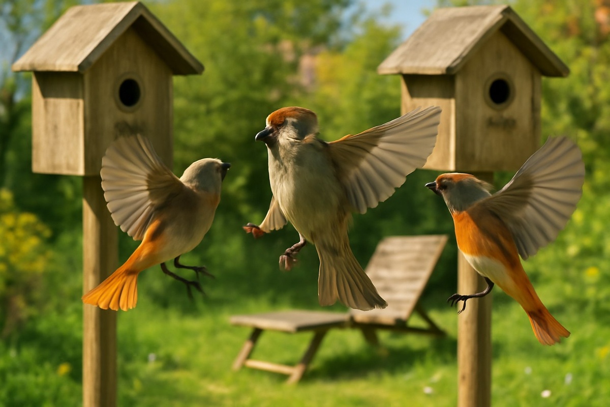 В прошлом году две пары воробьев подрались из-за жилья. Три отдельно стоящих скворечника не могли поделить. Когда вроде бы расселились- не могли узнать какой всё-таки чей. Менялись, путались, потом снова выясняли отношения. Мужики дрались, а тетки скандалили. В итоге просто все бросили и улетели.
