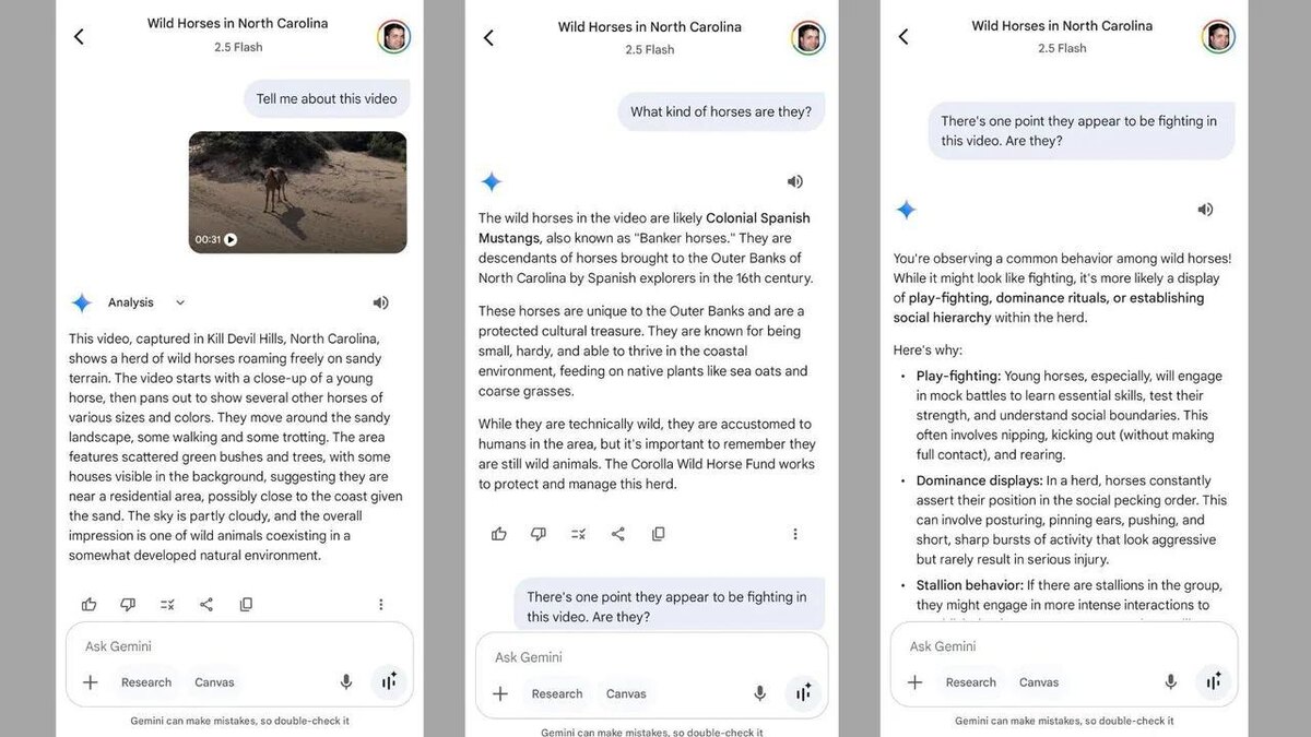 А видели, что Gemini понимает ваши загруженные видео? Загружаете видео в Gemini, пишете: что происходит на видео? И через минуту получаете разбор. ЛЛМ может: – описать происходящее в кадре – распознать место съёмки – ответить на вопросы про конкретные фрагменты (например: что происходит на 1:45?) – выдать краткое или подробное резюме Нажмите «+» рядом с полем ввода и выберите «видео». Если оно не серое значит у вас работает. Даже короткий клип анализирует неплохо. #videosummary@TochkiNadAI
