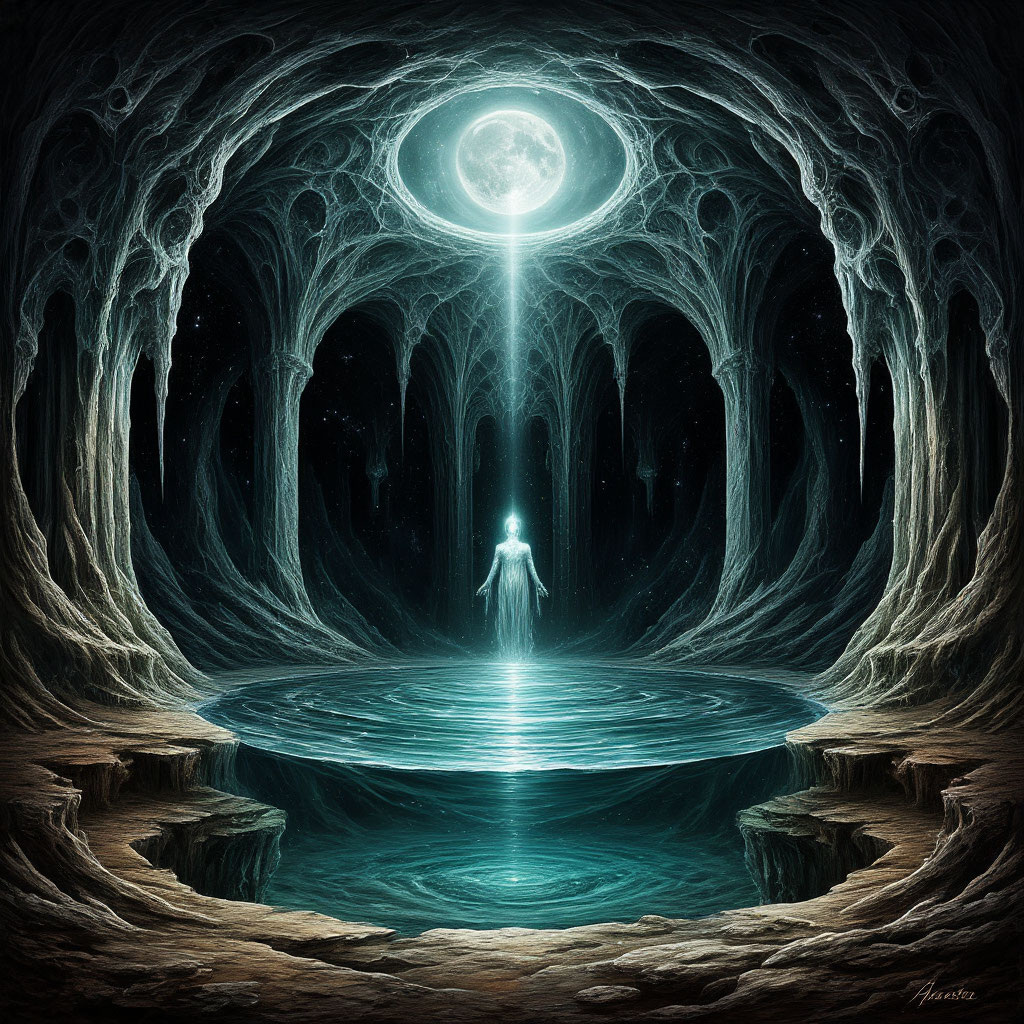 Легенда о Колодце Вечной Жизни В потаённых чертогах мироздания, где время замедляет свой бег, а пространство изгибается дугой вечности, таится священный Колодец. Его воды берут начало в истоках бытия, а глубина уходит в бездны первозданной мудрости. Закройте глаза… Представьте себя в царстве безмолвия. Ваши стопы касаются бархатной травы, каждый стебелёк которой хранит память тысячелетий. Воздух здесь прозрачен, как горный хрусталь, и наполнен ароматом древних смол. Дышите глубоко… Вдох — и вы впитываете энергию вселенной. Выдох — и отпускаете всё лишнее, ненужное, тяжёлое. Перед вами возникает силуэт древнего колодца. Его каменные стены покрыты древними рунами, а в глубине искрится свет, подобный звёздам в полночной тиши. Вода в нём поёт тихую песню, понятную только тем, кто умеет слушать сердце земли. Прислушайтесь… Капли падают в воду, создавая симфонию бытия. Каждая капля — это история, каждый всплеск — воспоминание о вечности. Опуститесь на колени у края колодца. Ваши руки касаютс