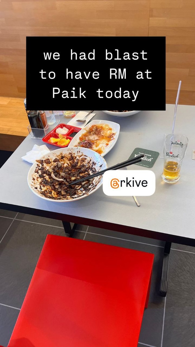 🥢 RM недавно посетил ресторан Paik's Noodle и даже оставил там автограф, чем ресторан поделился в Instagram story
