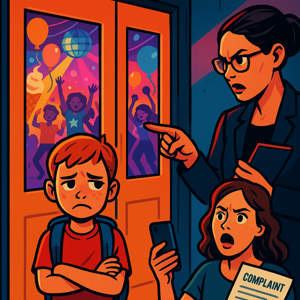 Укажите, что просите срочно разобраться и допустить ребенка на праздник. Попросите письменный ответ.