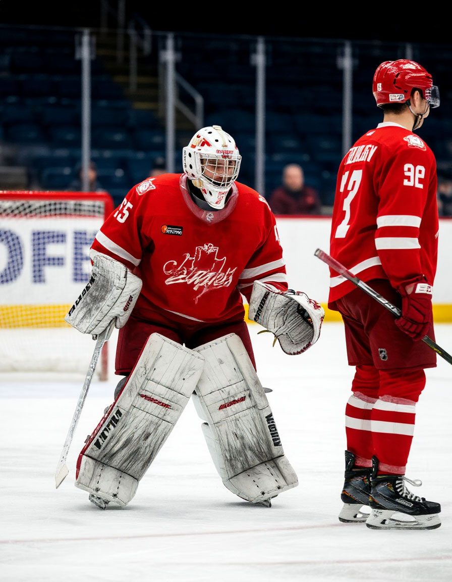Я бросаюсь вправо, чтобы перехватить шайбу, но плечо дает о себе знать, и движение получается неидеальным. Шайба попадает в перекладину и скользит вниз, чуть не попадая в ворота.