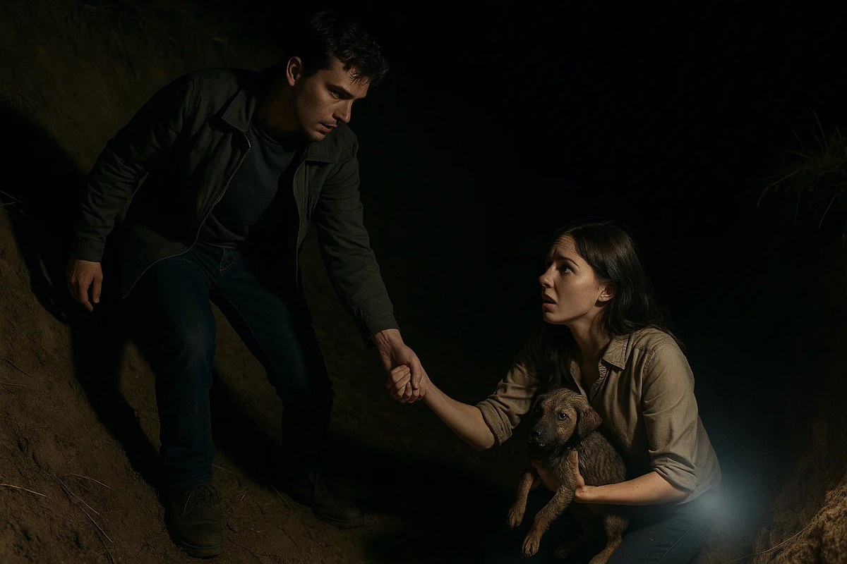 Неожиданно снизу донёсся женский голос — тонкий, взволнованный. Он встал и осторожно спустился по склону, где увидел худенькую девушку, пытавшуюся вытащить из ямы щенка. Маленькое тельце дрожало, шерсть липла от грязи, а сам он жалобно повизгивал и не давался в руки. Не говоря ни слова, Вадим подошёл и помог ей.