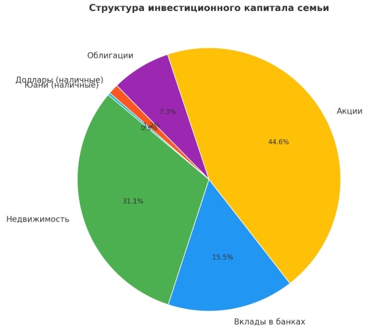 Сегодня не буду длинных статей публиковать так как времени ни вчера ни сегодня утром не было - учился. Я решил пересмотреть свое отношение к публикациям - публиковать буду только очень важное и интересное 4 дня в неделю: ✅Понедельник ✅Среда ✅Пятница ✅ Воскресенье А по мере появления важной информации буду внеплановые выпуски публиковать с пометкой ⚡️ (молния). В сети много однотипной и повторяющейся информации, а я не хочу тиражировать вам, что и так в сотнях, а то и тысячах каналах. Чуть позже, когда пройду обучение по сложным разборам и аналитикам компаний, начну в отдельном канале публиковать отчёты с разборами, но сейчас я не готов, да и не вижу смысла в этом т.к. есть вещи куда важнее этого. В общем имейте ввиду, если я не публиковался в этот день - значит я готовлю для вас интересный и самое главное полезный материал. Вывел вам состав наших активов нашего капитала в процентном соотношении. Вклад даёт самую стабильную долю дохода, но его доходность может быть ниже инфляции и н