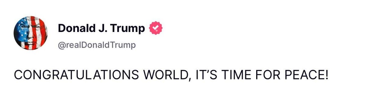 Trump congratulates the WORLD ‘IT’S TIME FOR PEACE’
