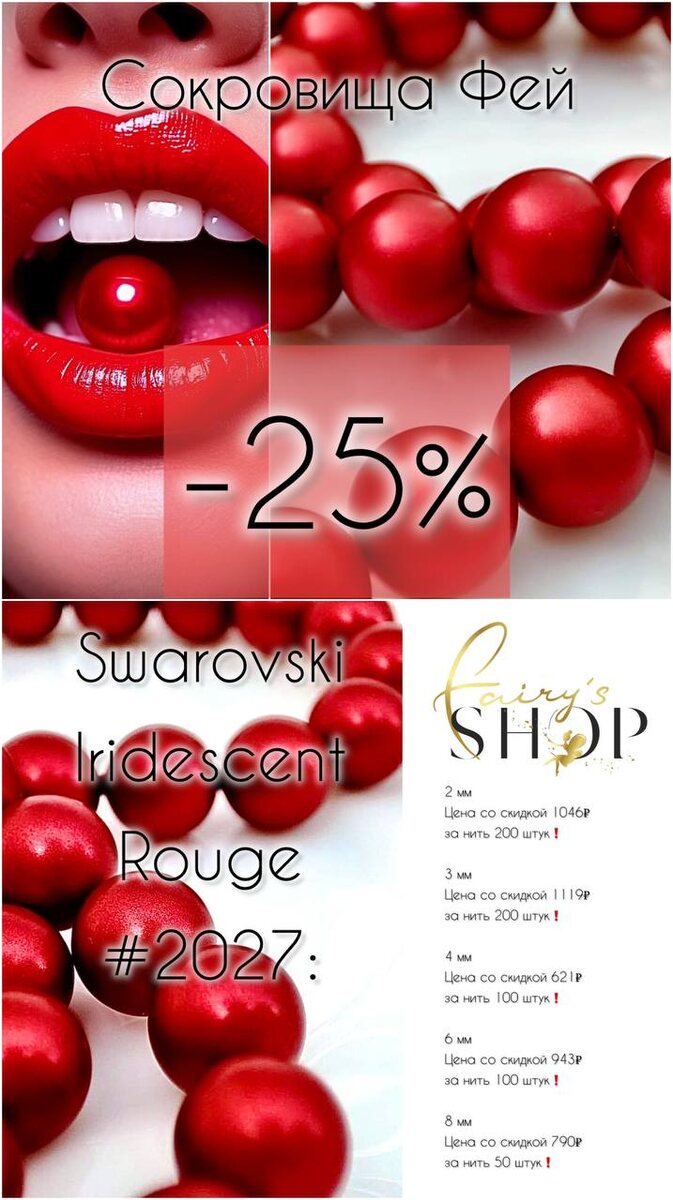⚡️Волшебницы, еще есть возможность закупить роскошный Жемчуг Swarovski Iridescent Rouge #2027 по самой низкой в России цене!🔥