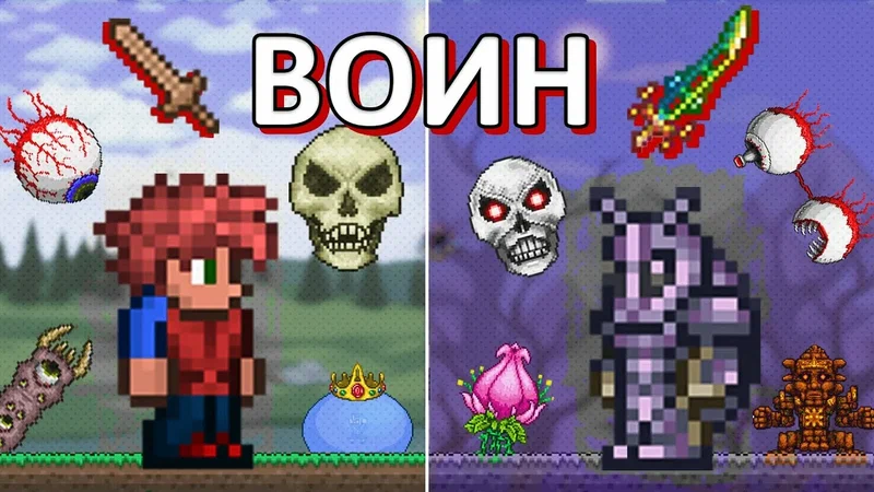 Воин в Terraria — это класс, сосредоточенный на ближнем бою. Он делает ставку на высокую защиту, мощный физический урон и стабильную выживаемость. Играть за воина можно как в одиночку, так и в команде, и его стиль особенно привлекателен тем, кто любит «врываться» в сражения. СлотПредметБроняСолнечная броняОружиеЗенит / Меч День-Ночь / Йо-йо ТерраАксессуарыОгненная рукавица, Небесная ракушка, Щит Анха, Эмблема воина, Мастер-ниндзяМаунтМетла или UFO (для мобильности)МодификаторЛегендарныйБаффыЖелезная кожа, регенерация, ярость, еда (Well Fed), выносливость Воин — один из самых устойчивых и мощных классов в Terraria. Если тебе по душе сражения лицом к лицу, огромные мечи и выживание в хаосе, этот путь точно твой. Играя за воина с самого начала и до финала, ты пройдёшь через опасности, боссы, лаву и хаос — и станешь настоящей легендой Terraria.
