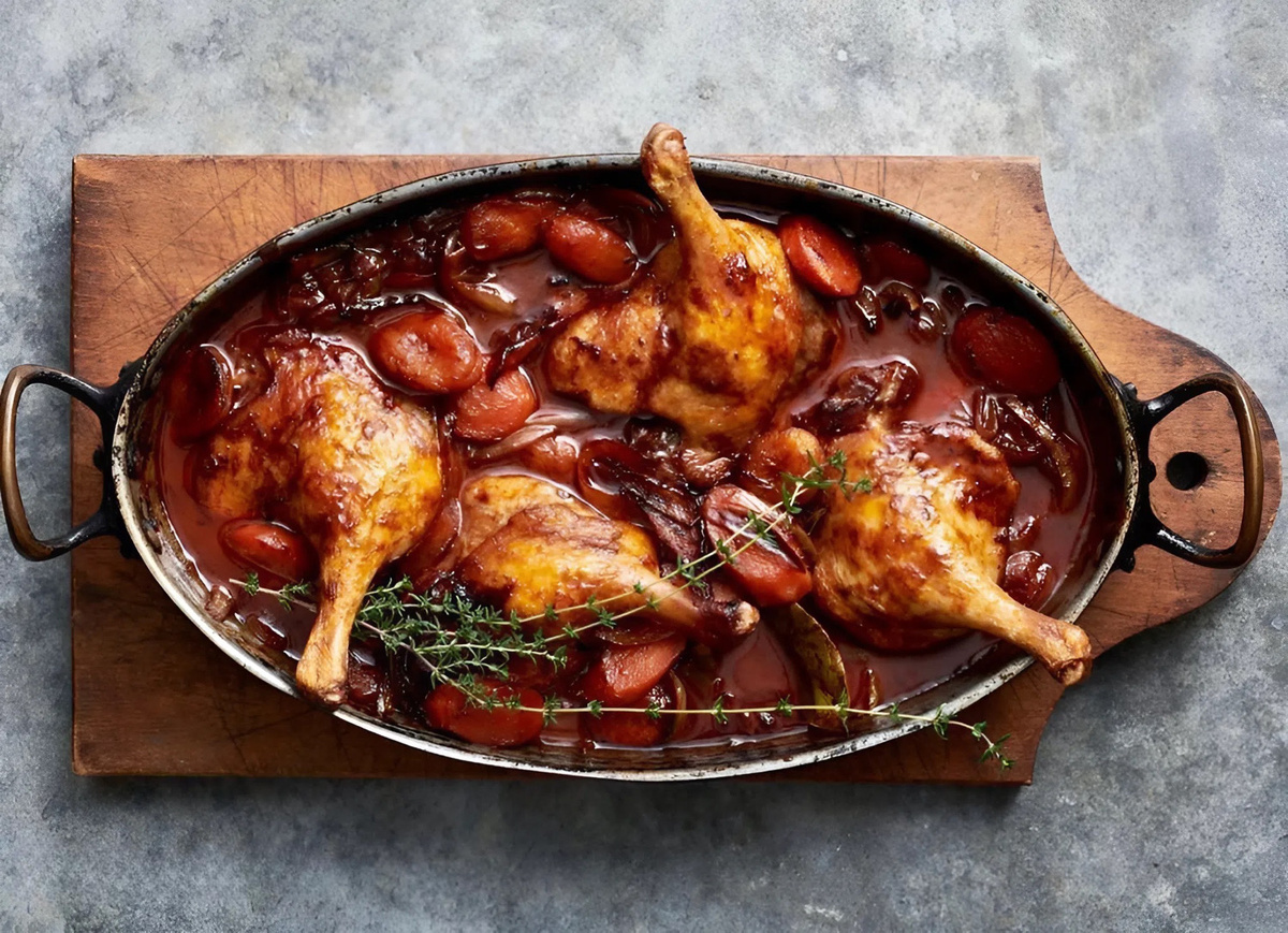 Французская кухня XIX века — это эпоха расцвета гастрономии, когда повара превращали простые блюда в кулинарные шедевры. Одним из таких изысков была утка по-бургундски (Canard à la Bourguignonne), вобравшая в себя богатые традиции Бургундии — края виноделов, сыров и сочных мясных блюд. Бургундская кухня всегда славилась сытными блюдами с вином. Изначально утку в красном вине готовили крестьяне — это был способ сделать жестковатое мясо нежнее. Однако в XIX веке, с развитием ресторанной культуры, блюдо перекочевало в меню парижских бистро и даже на званые ужины высшего света. Известно, что Мари-Антуан Карем, один из первых «звездных» шеф-поваров, усовершенствовал рецепт, добавив грибы и ароматные травы. Позже Огюст Эскофье, автор «Кулинарного путеводителя», включил Canard à la Bourguignonne в список классических французских блюд. Интересно, что первоначально вместо утки использовали курицу или кролика, но именно утиное мясо, с его насыщенным вкусом и жирком, лучше всего сочеталось с терп