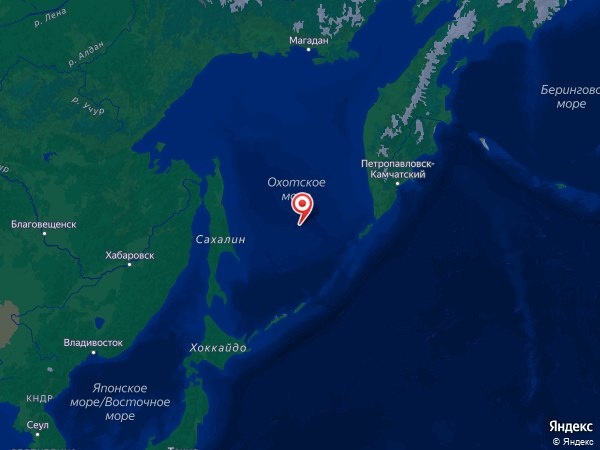 В 640 км к юго-западу от Петропавловска-Камчатского, Россия.