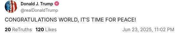 «ПОЗДРАВЛЯЮ ВЕСЬ МИР, ПРИШЛО ВРЕМЯ МИРА Донецкая группа новостей Донецк ДНР (Yandex.Zen) «ПОЗДРАВЛЯЮ ВЕСЬ МИР, ПРИШЛО ВРЕМЯ МИРА Донецкая группа новостей (RSS) «ПОЗДРАВЛЯЮ ВЕСЬ МИР, ПРИШЛО ВРЕМЯ МИРА!», — объявил Трамп в своих соцсетях Донецкая группа новостей
