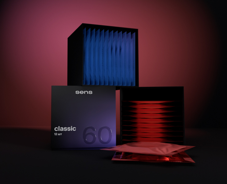 Разработка дизайна упаковки и брендинг продукта sens: гипоаллергенные презервативы с размерной сеткой