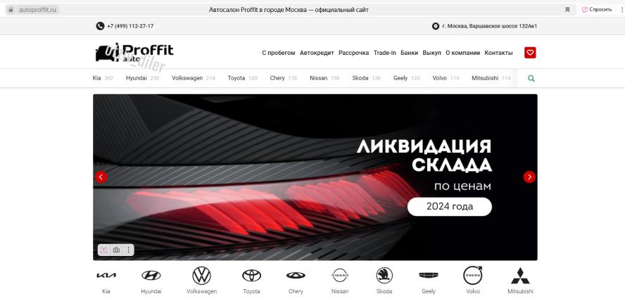 Proffit Авто — это автосалон в Москве. Здесь продаются авто с пробегом. О дилере обнаружены фейковые положительные отзывы. При проверке были обнаружены и другие подозрительные моменты. В автосалоне на Варшавском шоссе 132Ак1 в Москве можно купить автомобиль с пробегом с большой скидкой. При этом публичная оферта отсутствует, на сайте нет верифицированных отчетов о состоянии авто и правил проведения акций. Нет никаких оснований верить в то, что сведения в каталоге совпадают с тем, что есть в реальности. Владельцем автоцентра Proffit Авто является ООО «ПРОФФИТ СЕВЕР» (ИНН: 7743440276). Компания была зарегистрирована в январе 2024 года. Уставной капитал 100 000 рублей, среднесписочная численность сотрудников — 2 человека. По юридическому адресу зарегистрировано еще 4 организации. Учредителю ранее принадлежало 2 фирмы с похожими названиями: ООО "Проффит Авто" и ООО "Проффит Групп". Они были ликвидированы в 2023 году. На данный момент в базе нет точных совпадений по названию и ИНН. Компания