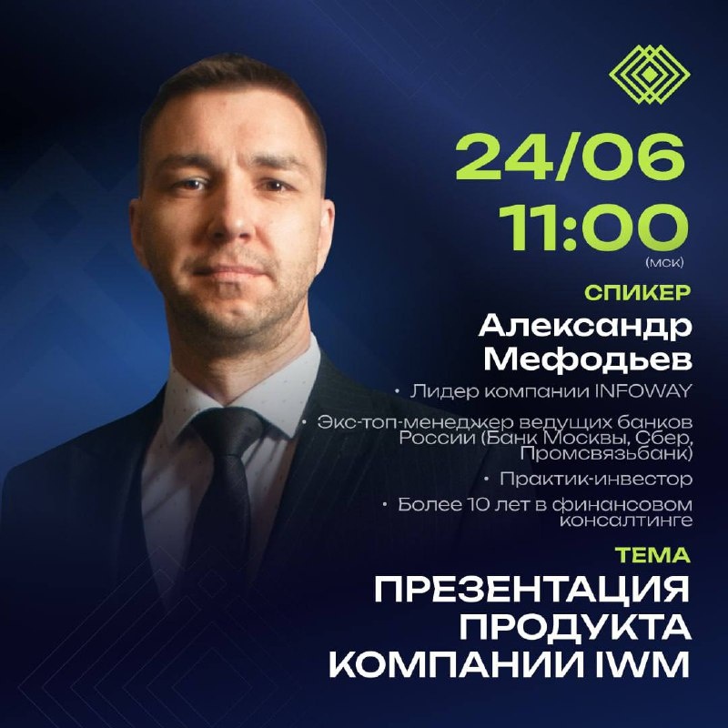‼️👀ЖДЁМ ВАС НА ПРЕЗЕНТАЦИЮ ПРОДУКТА— УЖЕ СЕГОДНЯ! 11:00! 🎤 Спикер: Александр Мефодьев ЛИДЕР КОМПАНИИ INFOWAY Экс-топ-менеджер федеральных банков, предприниматель, инвестор, трейдер. 🔗 Ссылка на встречу: https://us06web.zoom.us/j/2116731674?pwd=xahqmhZLmGsNMAcfVYG8sNdiNWlLRY.1