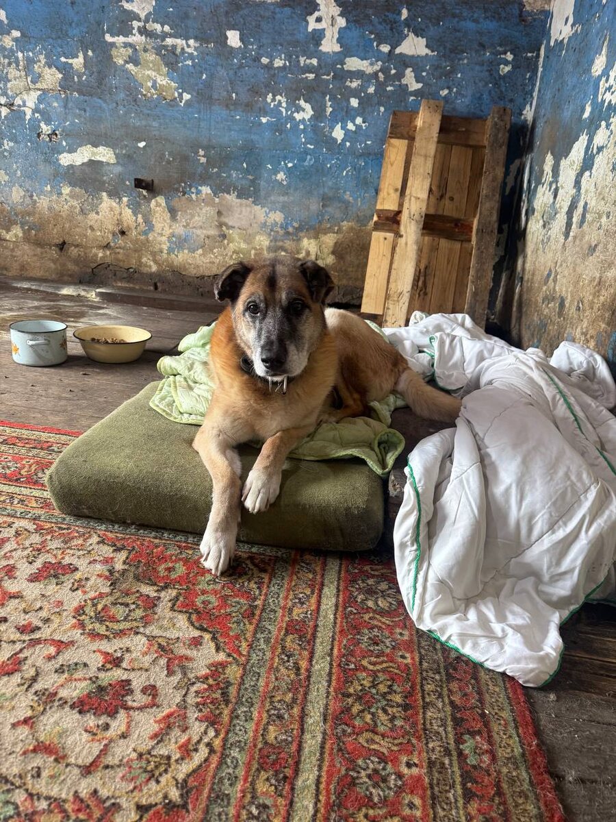 К нам Мухтар наш приехал погостить. Мы его лет 9 назад отдали женщине, но иногда она оставляет его у нас на передержку. Он столько не видел нас, а узнает сразу. Очень радуется нам, ведет себя спокойно, знает, что заберут. Постарел наш мальчик золотой