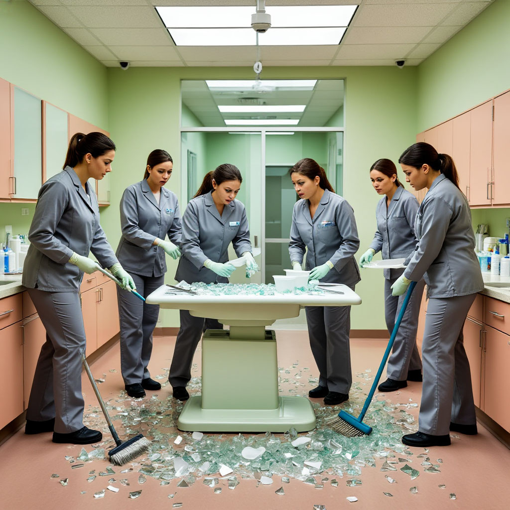 Утро было таким тихим, будто само пространство решило немного подремать. Кабинеты наполнялись мягким светом, машинки жужжали себе в унисон, в коридоре царила почти медитативная тишина… До одного момента. Вдруг — грохот. Настоящий, громкий, как в фильмах, когда герой случайно цепляет вазу с антикварной полки. Мы всей командой подскочили, вылетели в коридор, как школьники на перемену: кто с испуганными глазами, кто с тревожным «ой, а что там?» на лице. Заглядываем в кабинет гигиены — и картинка будто из художественного хаоса. Стоматологический столик — не выдержал напряжения момента. Грохнулся. Прямо во время приёма. Разлетелось стекло, разбилась чаша Петри, инструменты, как в замедленной съёмке, полетели в разные стороны, и наступила доля секунды, когда мозг просто завис. А потом — сплочённость команды! За считанные минуты мы, как слаженная бригада «скорой помощи для мебели», всё убрали, принесли новое оборудование, организовали работу будто ничего и не было. И всё бы ничего, но вишенка