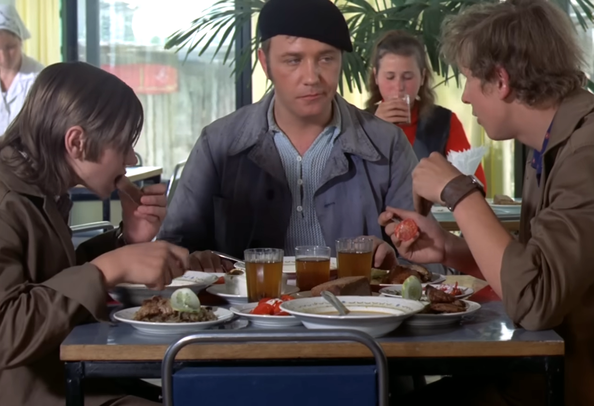 Помните сцену из «Афони», где наш харизматичный сантехник устраивает целый пир в столовой? «Три солянки, три лангета» — и вот уже 2 рубля 43 копейки как не бывало. По тем временам — щедрость несусветная! Плюс ещё пытался дать ученикам по рублю на кино. Если прикинуть, что зарплата у Афанасия была около 90 рублей в месяц (а это без учёта «левых» доходов), то такой обед — явный перебор. Ведь даже если тратить по рублю на завтрак и ужин, в месяц набегает 60 рублей. Остаётся 30 — а ведь ещё надо на сигареты, выпивку и духи «Москва»! Да и костюмы носить, в фонтанах купаться, на танцах драться… В общем, вопросов больше, чем ответов. Во-первых, давайте разберёмся: какая вообще столовая могла быть у сантехника из ЖЭКа? При ЖЭКах своих столовых не было — значит, Афоня ходил либо в городскую столовую, либо в фабрику-кухню, либо в кафе, которое днём работало как обычная столовая. И вот тут начинается самое интересное. В таких местах ассортимент мог быть очень даже ресторанным! Лангет (тонкий кусо