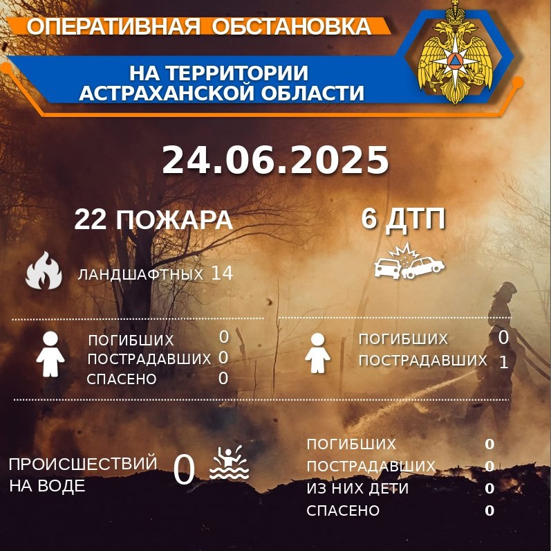 🚨Оперативная обстановка на территории Астраханской области по состоянию на 00:00 24.06.2025