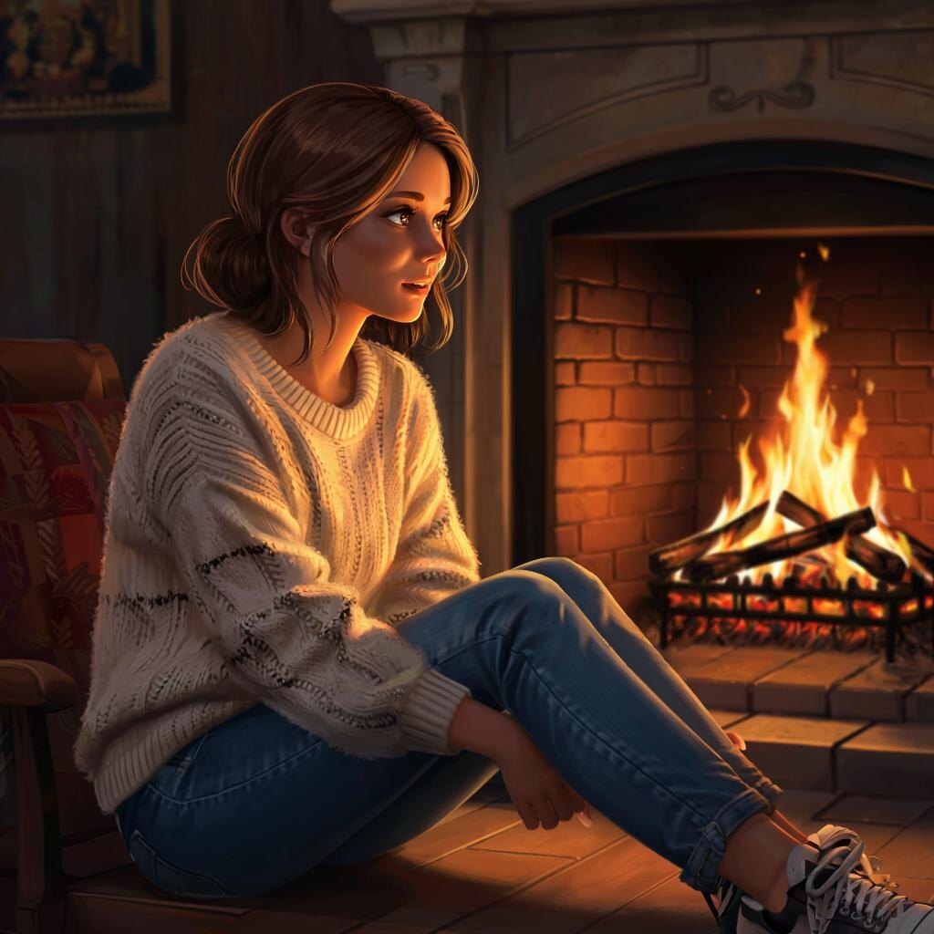 Я подбросила оставшиеся дрова в камин, чтобы незнакомцу было теплее, и не заметила, как сама уснула. Сквозь сон слышала треск поленьев, отголоски бури за окном и тихий, незнакомый голос, что-то напевающий у камина. Когда открыла глаза, пламя почти погасло, отбрасывая пляшущие тени на стены. Незнакомец, закутанный в плед, смотрел на меня с чуть смущенной улыбкой.