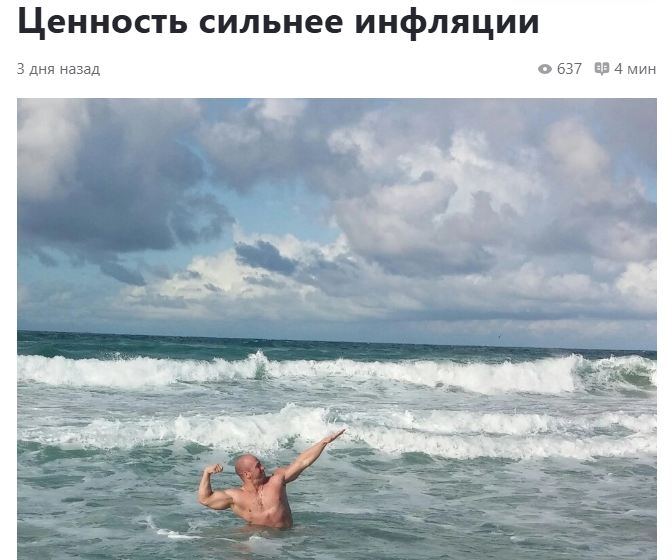 Приветствую вас на моем канале. Есть такой автор на Дзене, который размышляет о правильном мышлении. Вы все его наверное знаете. Поэтому в рекламе он, я думаю, не нуждается. Иногда Дзен выдает мне его публикации. Чаще всего видео. Но я видео не смотрю. Предпочитаю читать тексты. И вот мне на глаза попалась его статья. Решил почитать. Вот ее обложка. Всю статью пересказывать не буду. Если захотите, можете ее найти и сами прочитаете. Мне понравился там один из тезисов автора. Он написал, что высоко эффективные люди наращивают свой доход минимум на 50% в год. Что значительно выше инфляции. При этом из текста было понятно, что мало кто ценит автора, как крутого тренера. И что они, непонимающие его ценности, многое теряют. Мне стал интересен этот диссонанс. С одной стороны автор говорит, что эффективные люди наращивают доход минимум на 50% в год. С другой стороны он как бы жалуется, что его, как тренера не очень то и ценят. Я всей его истории не знаю. Читаю очень редко. И сколько он зарабат