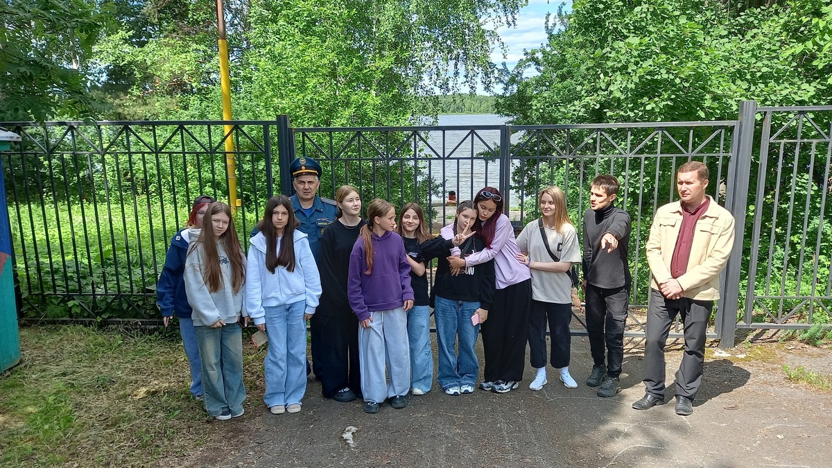 👫 Ребятам разъяснили, что купаться можно только в местах, где проверена вода, очищено от опасных предметов дно водоёма, оборудован пляж и дежурят спасатели.